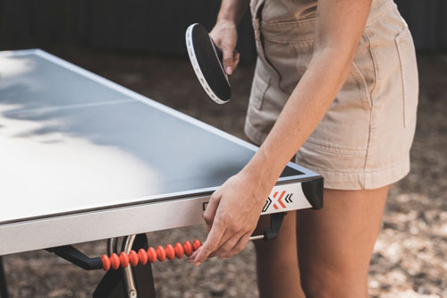 najzahtevnejše teste. Močan dež, sneg, ekstremna vročina - ne glede na vreme, plošča še vedno ostaja enaka. Tudi če ste izredno grobi - udarci loparjev in drugi udarci ne bodo pustili sledi. Vse kovine, uporabljene pri mizi 500X, so dobile