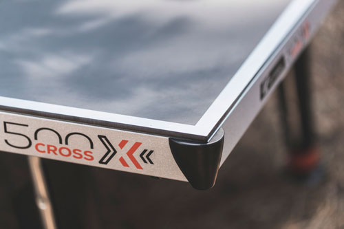 mm debelo igralno površino iz smolnatega laminata, miza za namizni tenis 500X omogoča igranje tudi najbolj zahtevnim igralcem, ki tako končno ne bodo več zapuščali igranja na zunanjih mizah.