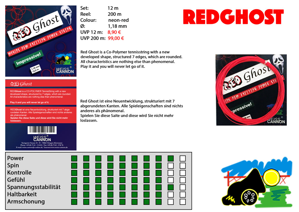 Povsem nova teniška struna Weiss Cannon Red Ghost nudi izredno dobro razmerje med udobjem, kontrolo, rotacijo močjo in občutkom.